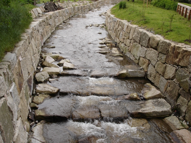Gewässersohle wurde befreit von Beton, es wurden dafür Steinplatten