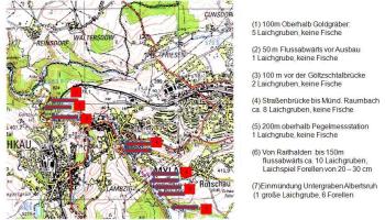 dass kiesige Laichplätze sich über den gesamten Flusslauf verteilen