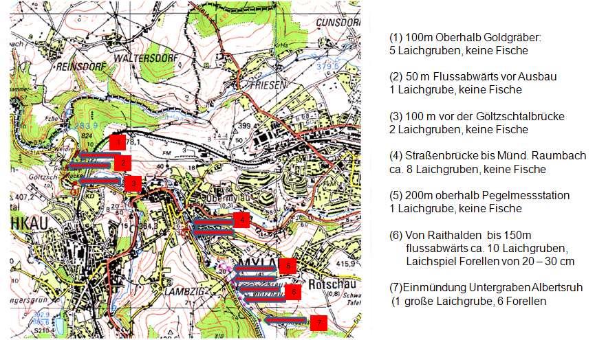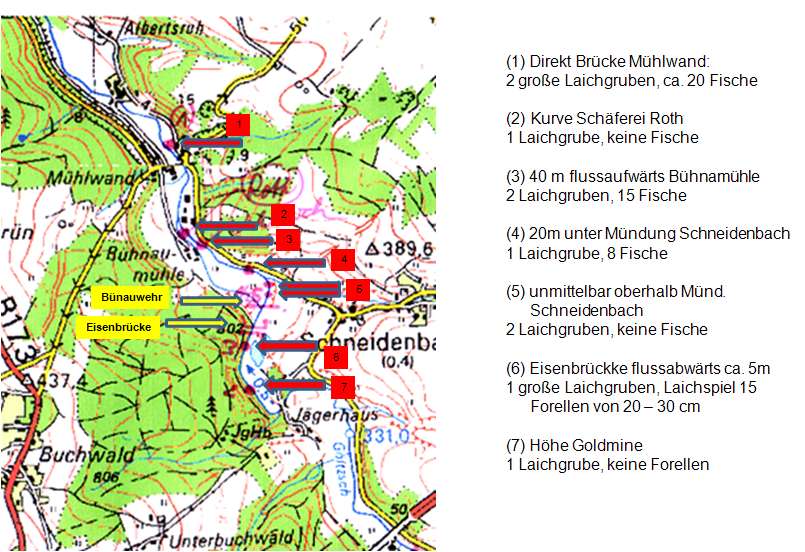 und von den Fischen auch angenommen werden. Die Laichplätze an der